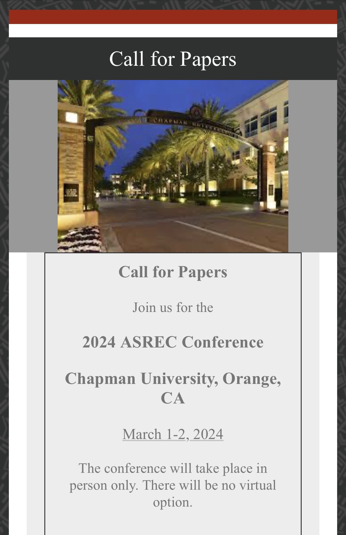 Source : www.chapman.eduASREC on X: “***ASREC 2024*** Orange, CA Chapman Univ. March 1 2